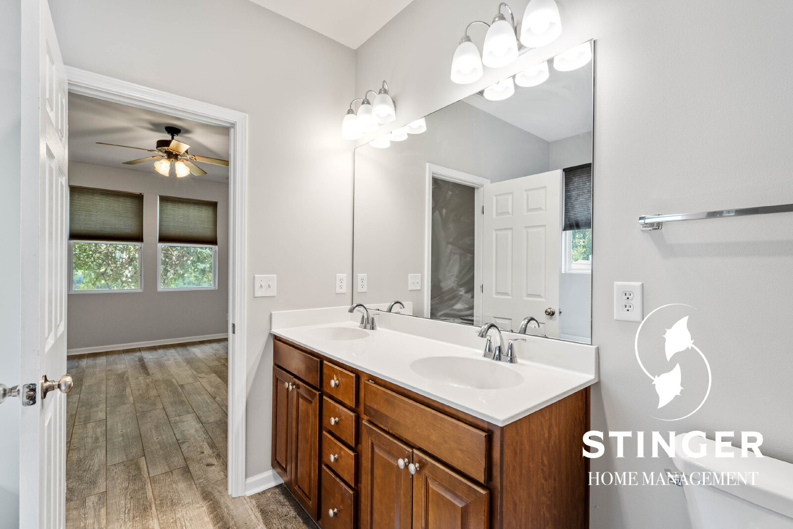 - First-floor primary bedroom suite with two additional bedrooms and a full bathroom