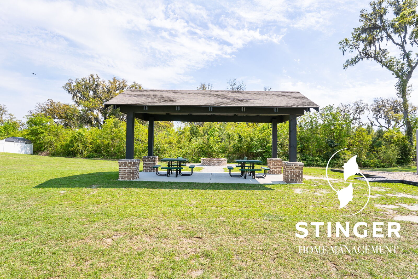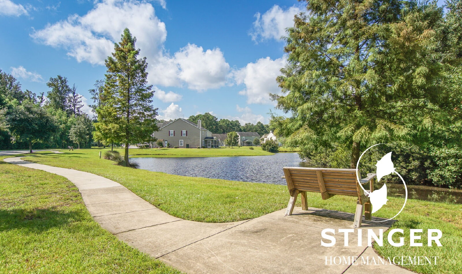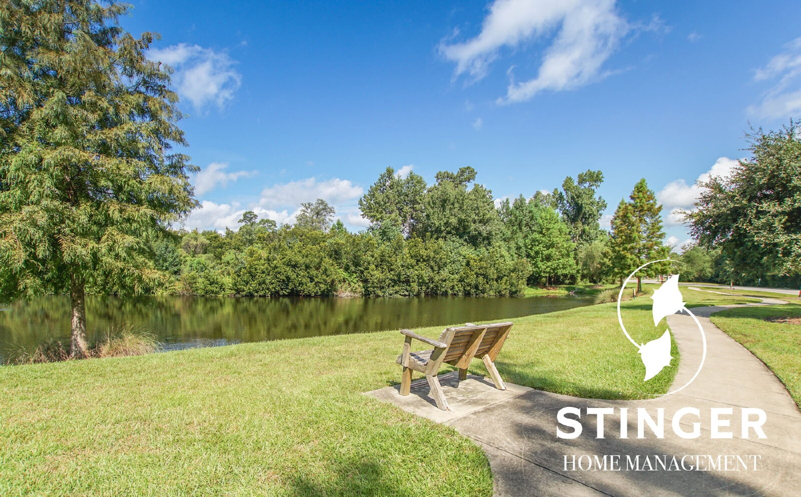 - Home is conveniently located across the street from the community park and backs up to a scenic pond