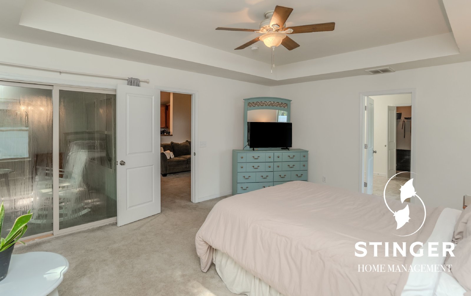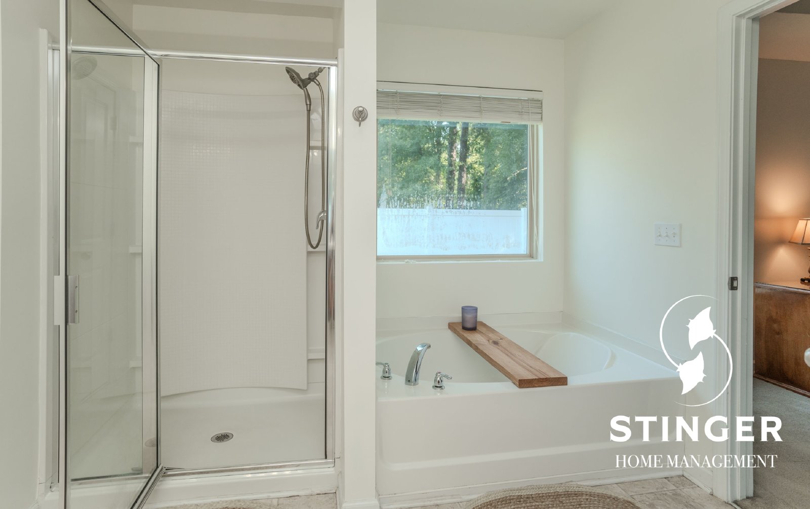 - Private primary suite with a shower/tub combo and a walk-in closet