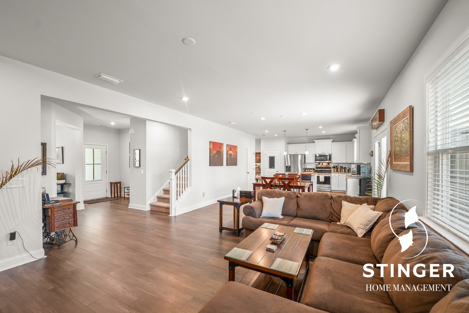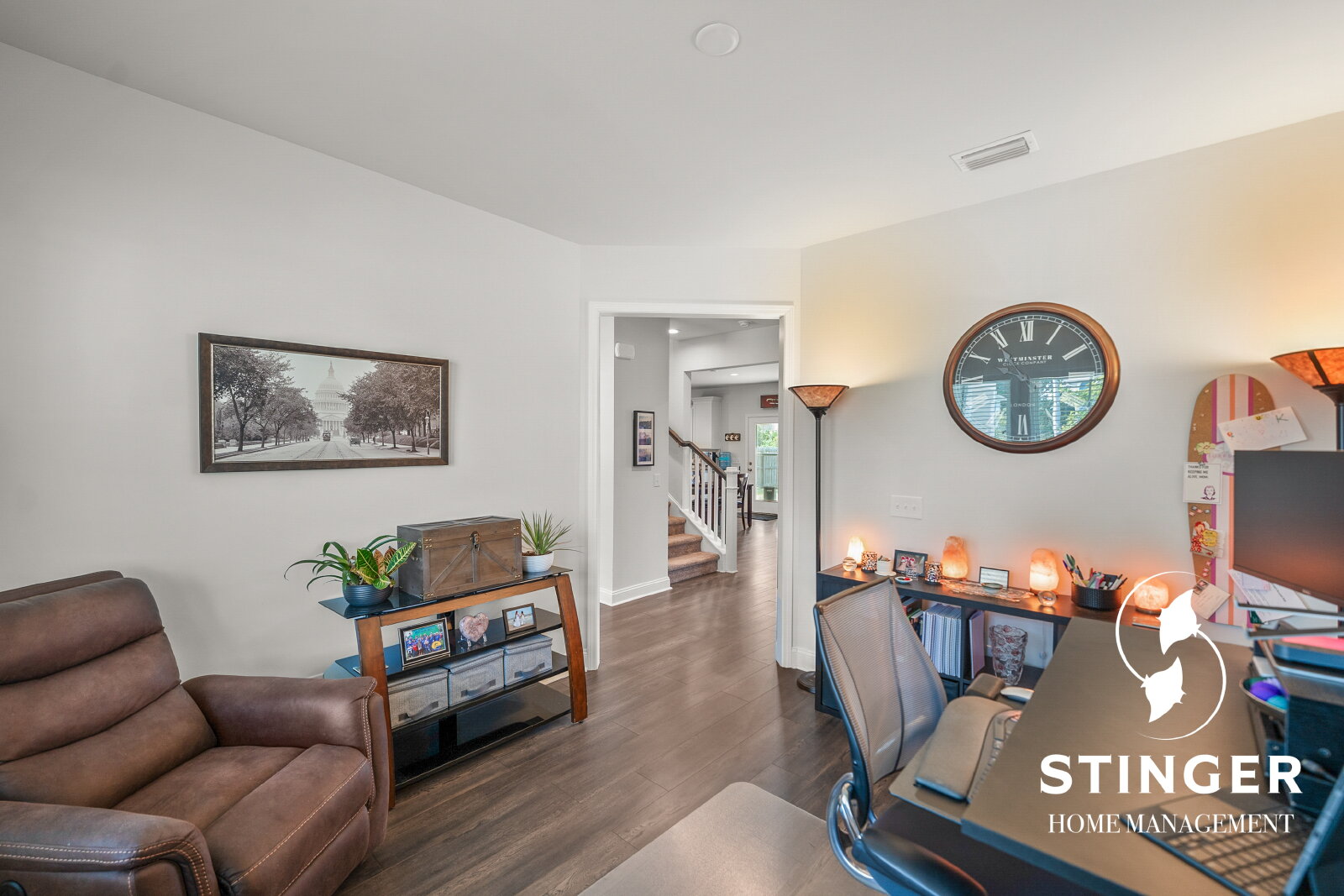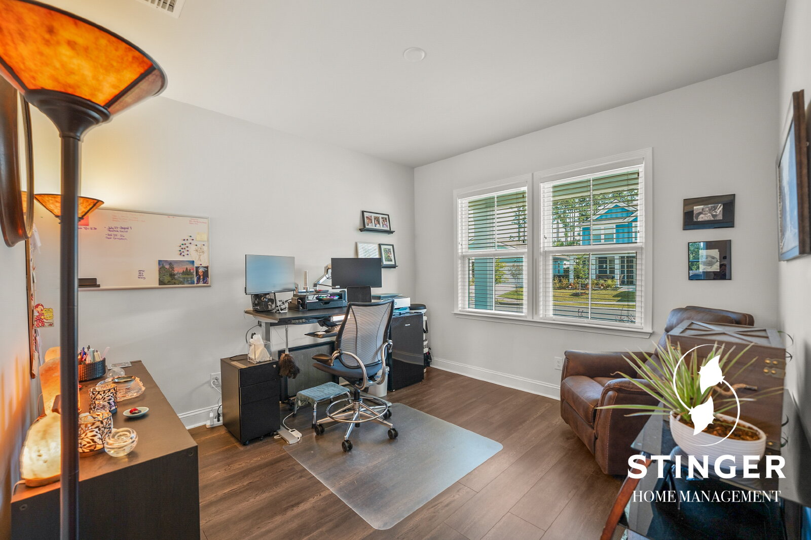 - Dedicated office space on the main level, with an open-concept living, dining, and kitchen area