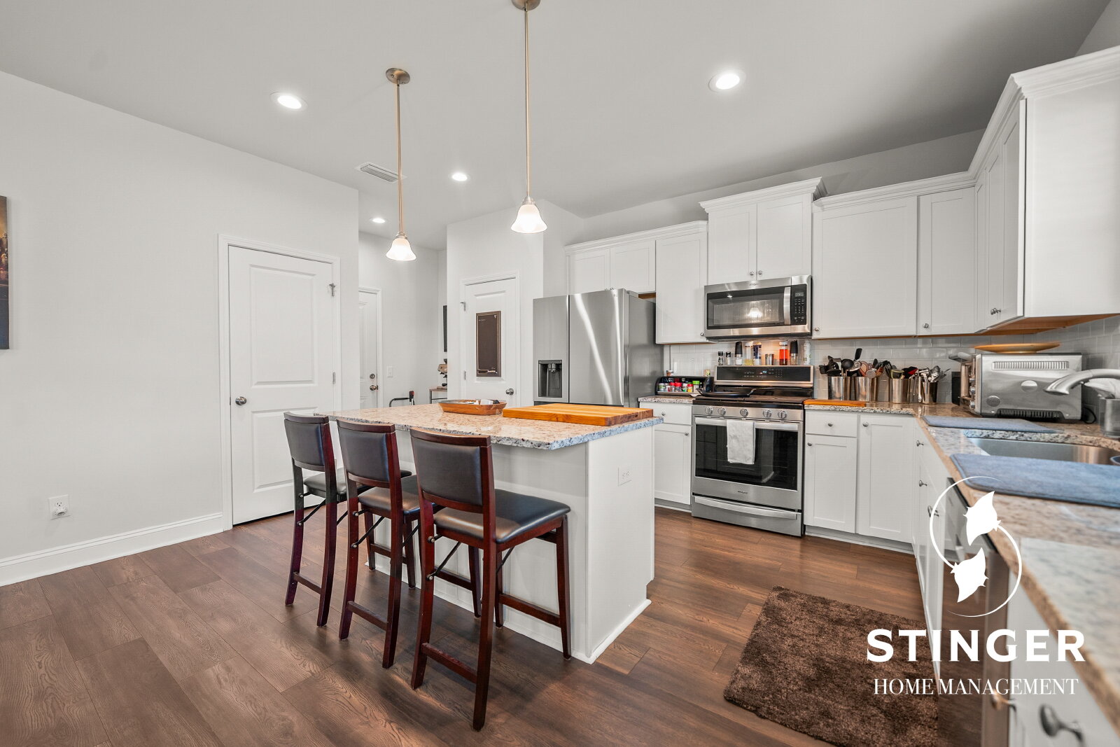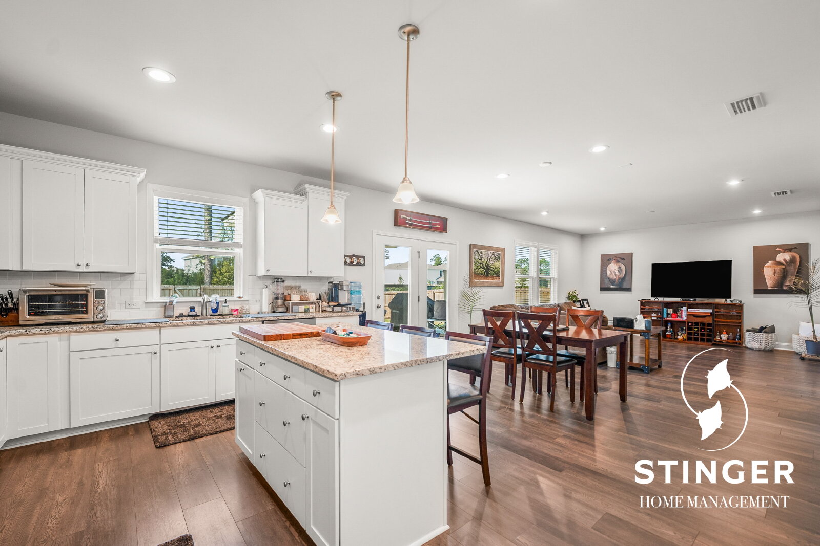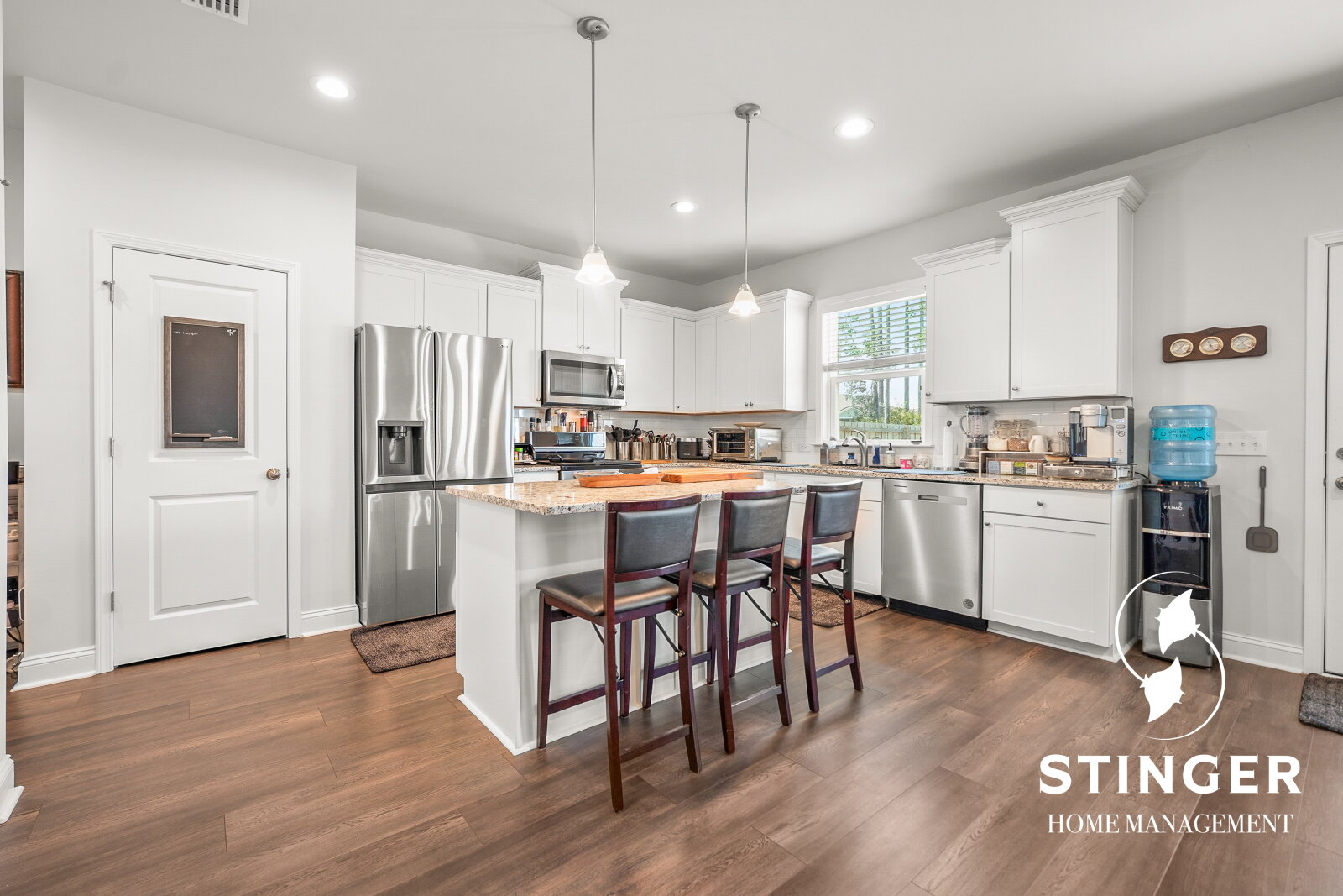 - Dedicated office space on the main level, with an open-concept living, dining, and kitchen area