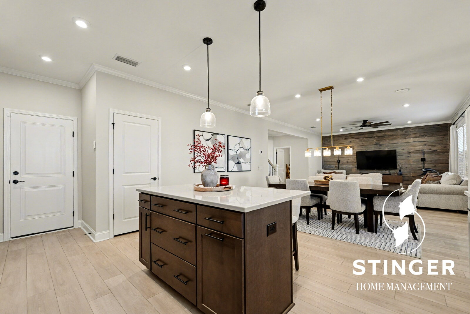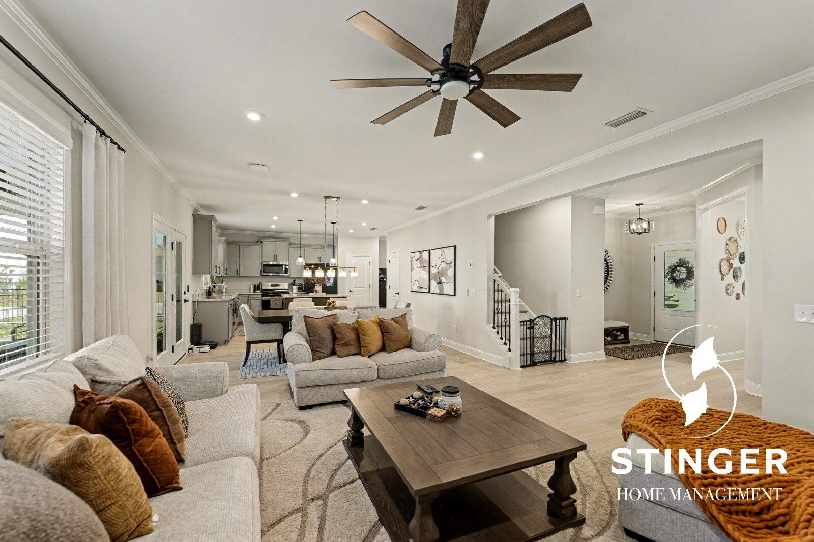 - Open-concept main floor that seamlessly connects the kitchen, dining, and living spaces
