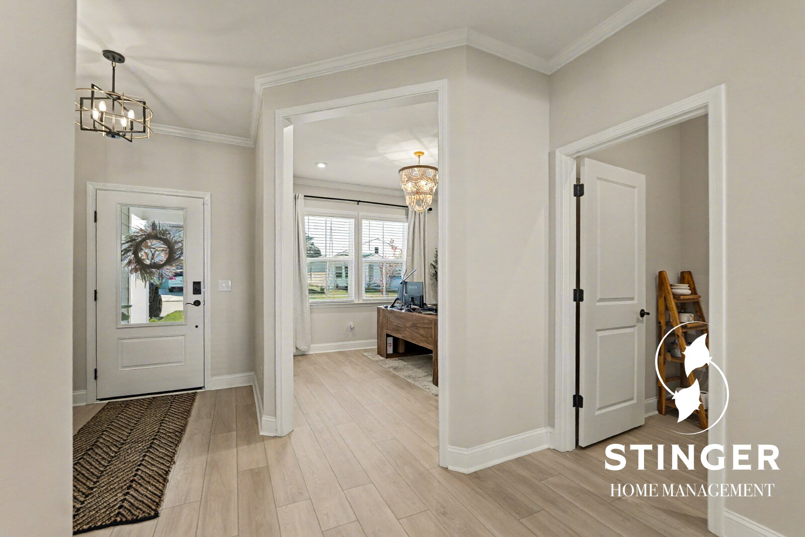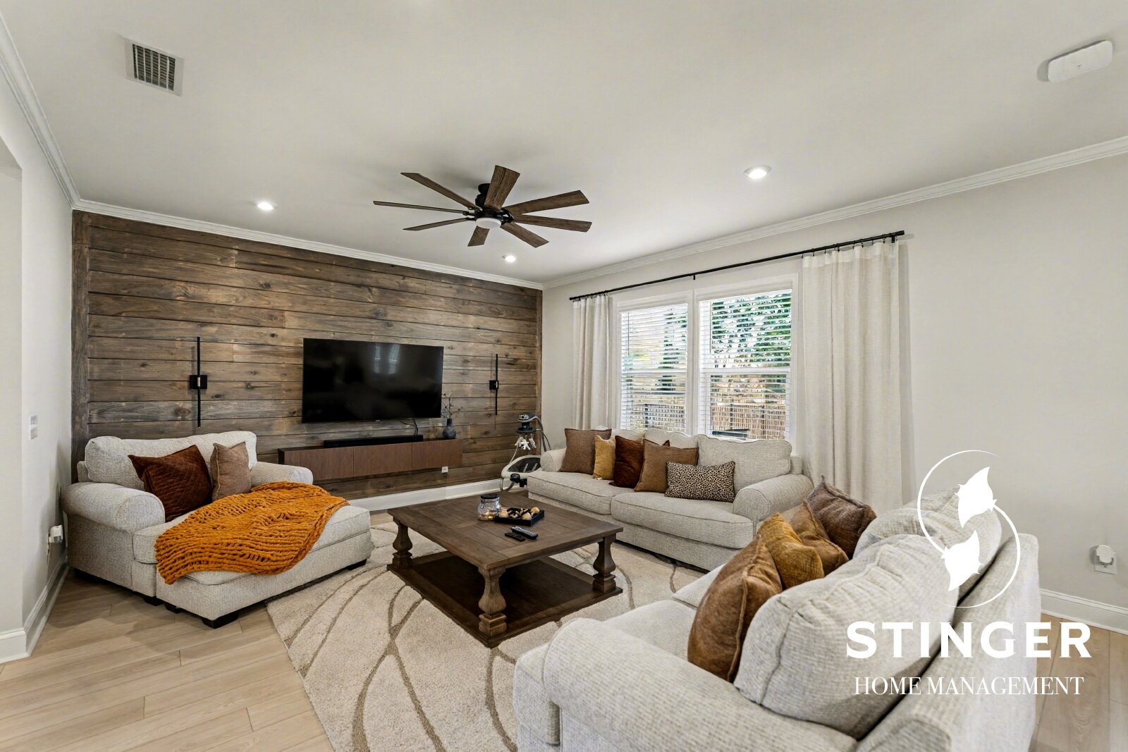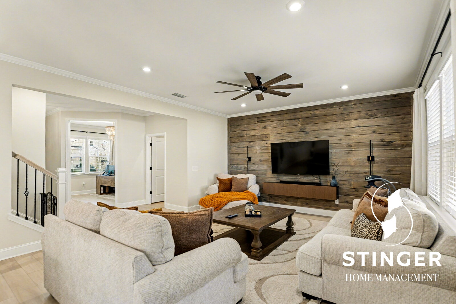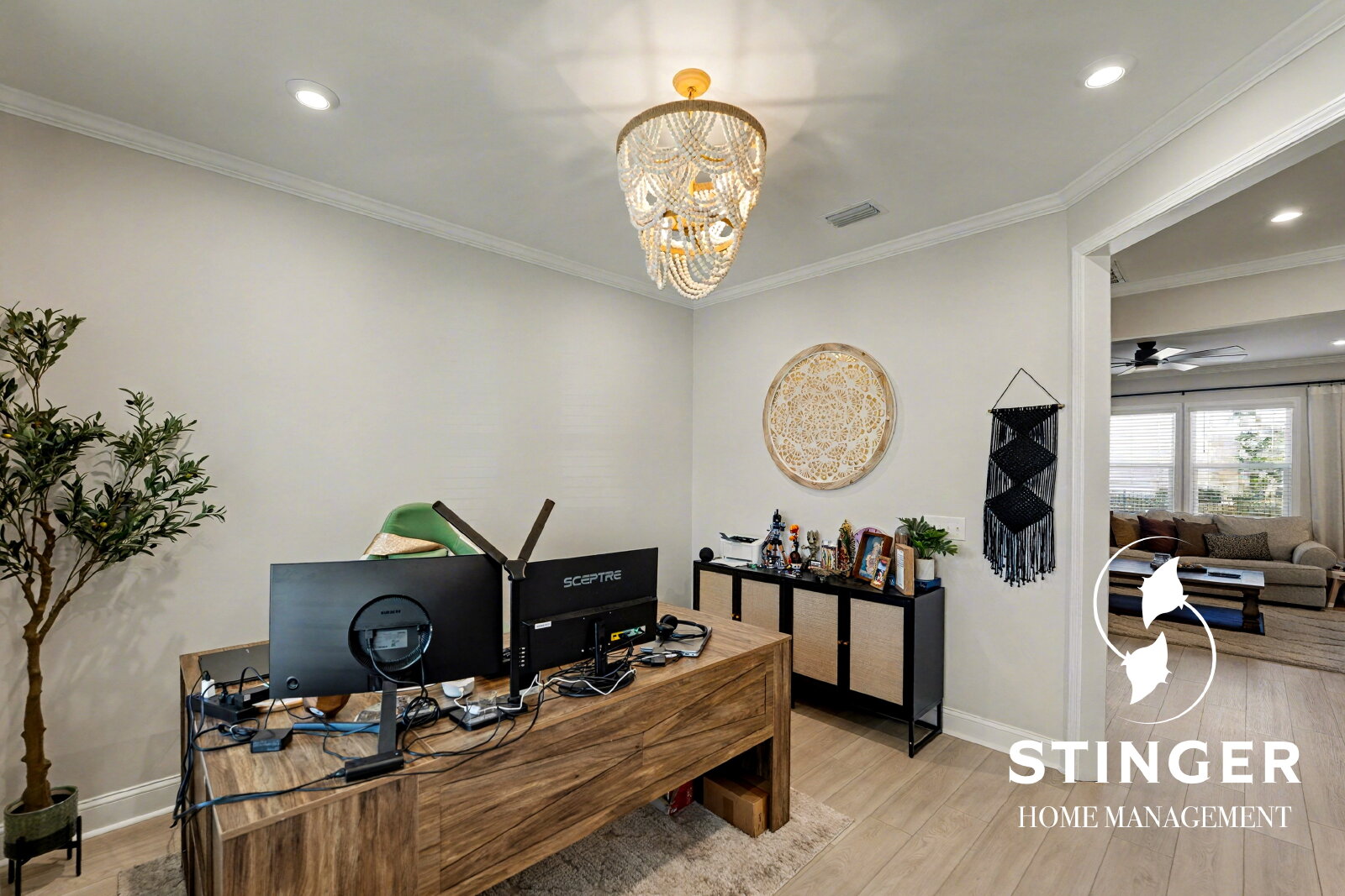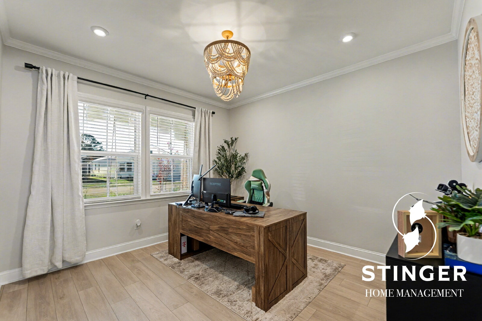 - Versatile downstairs flex space perfect for an office, playroom, or additional living area
