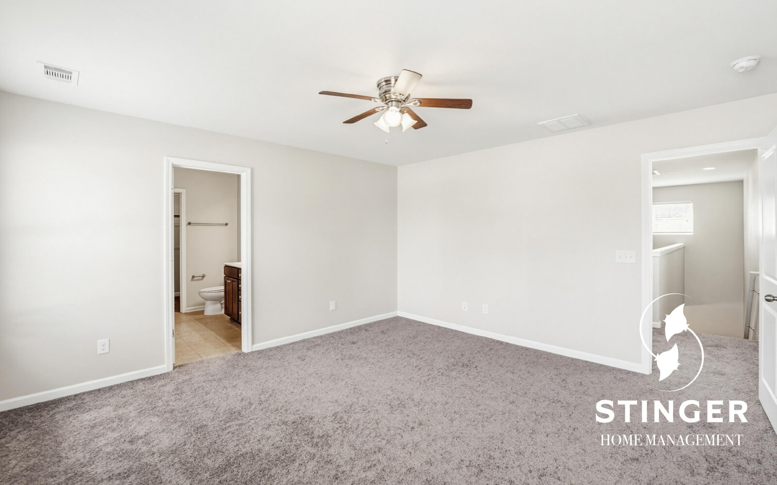 - The primary suite features a private ensuite bathroom and a spacious walk-in closet.