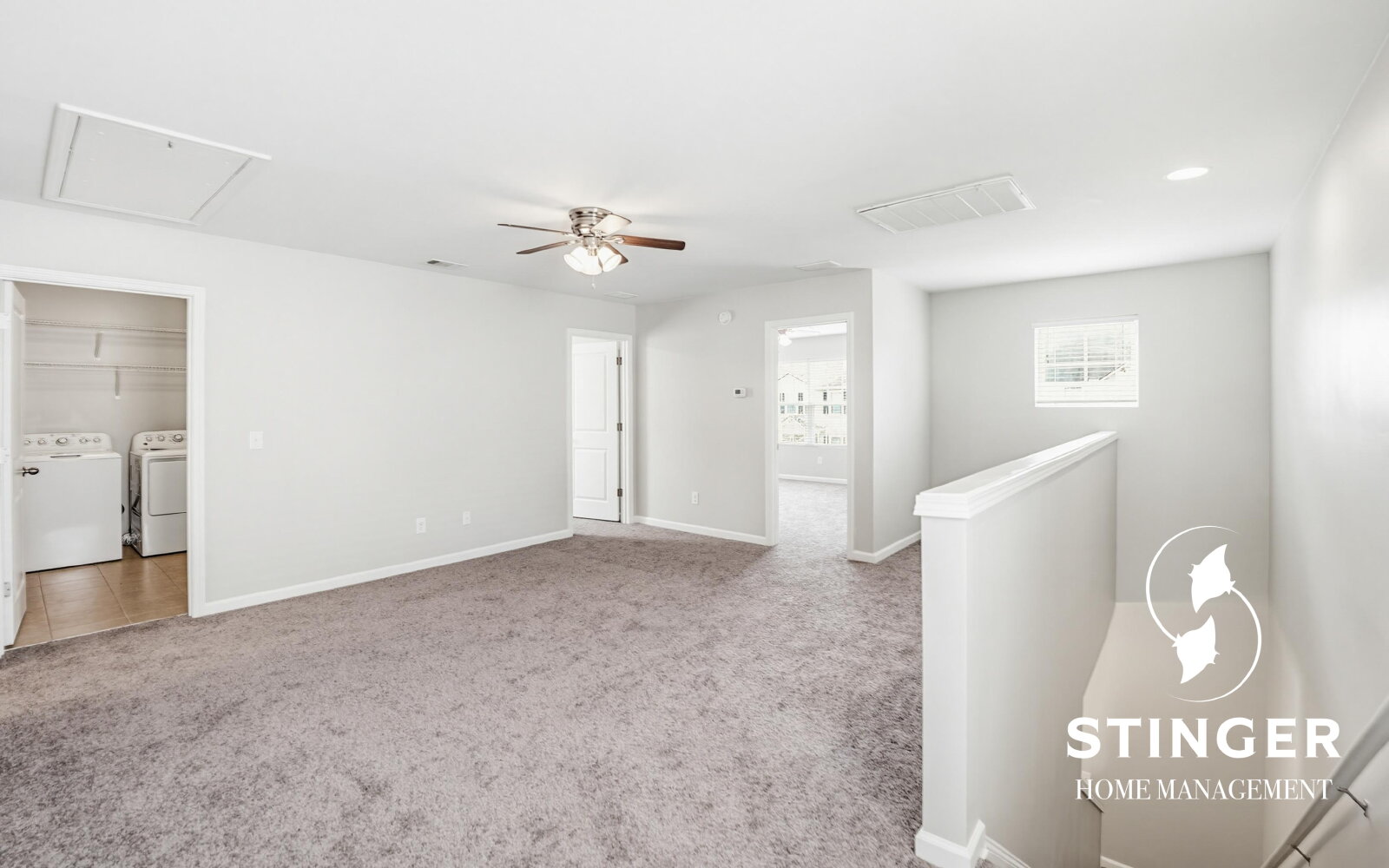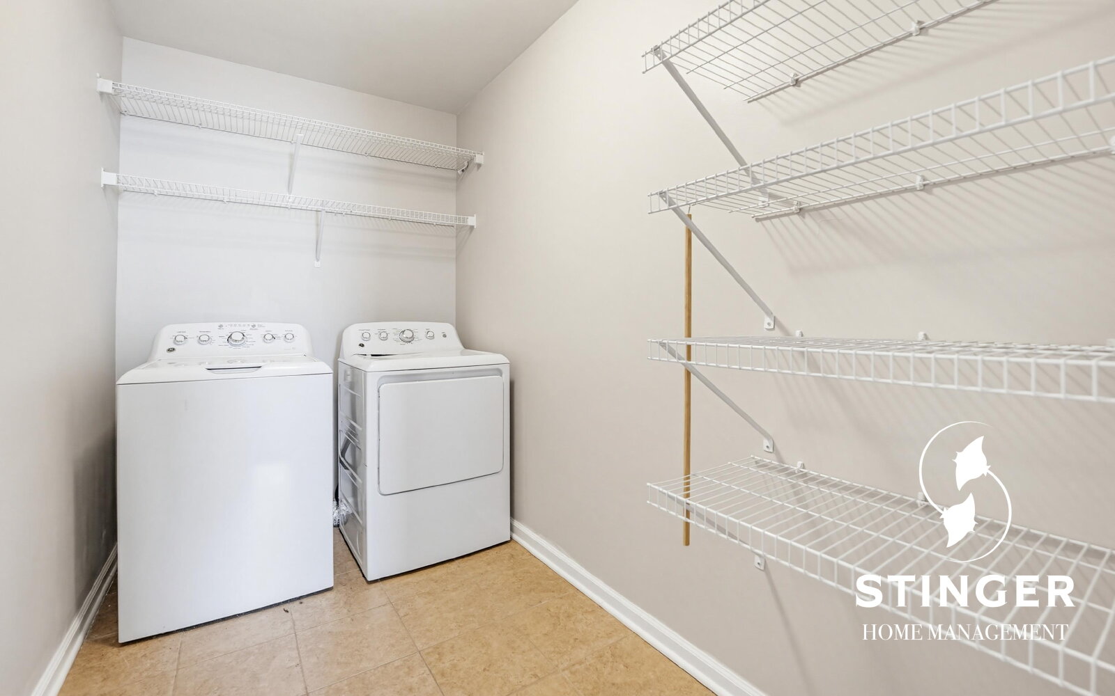 - The laundry room is conveniently located on the second floor and includes a washer and dryer.