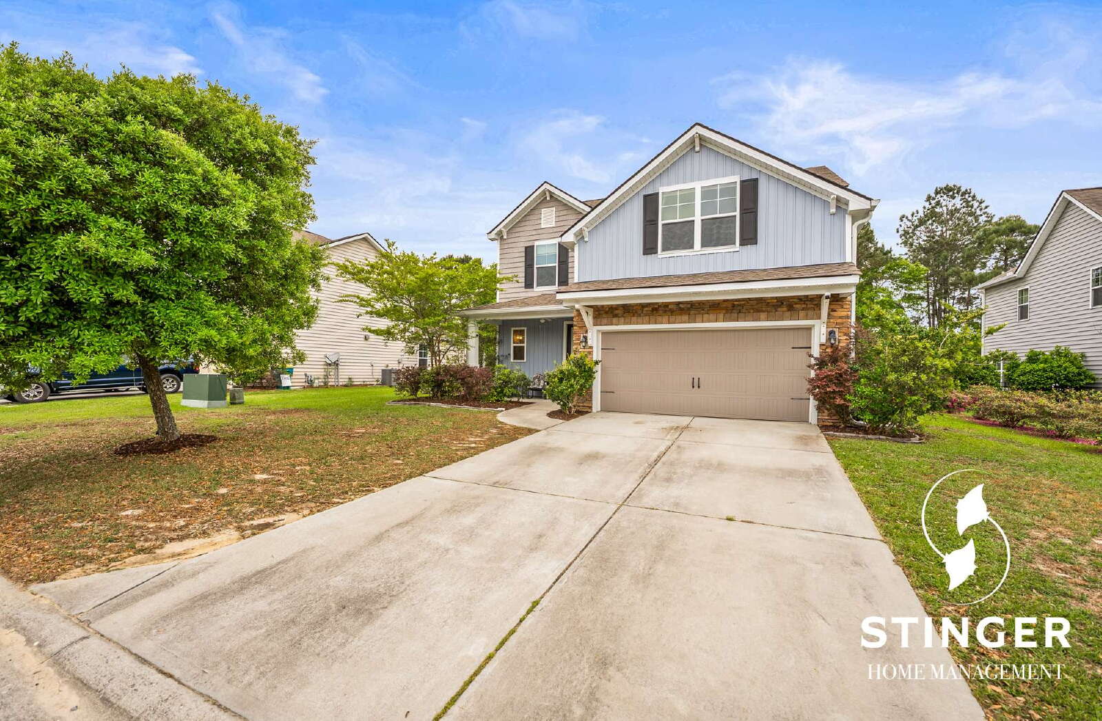 - Attached two-car garage with additional driveway parking