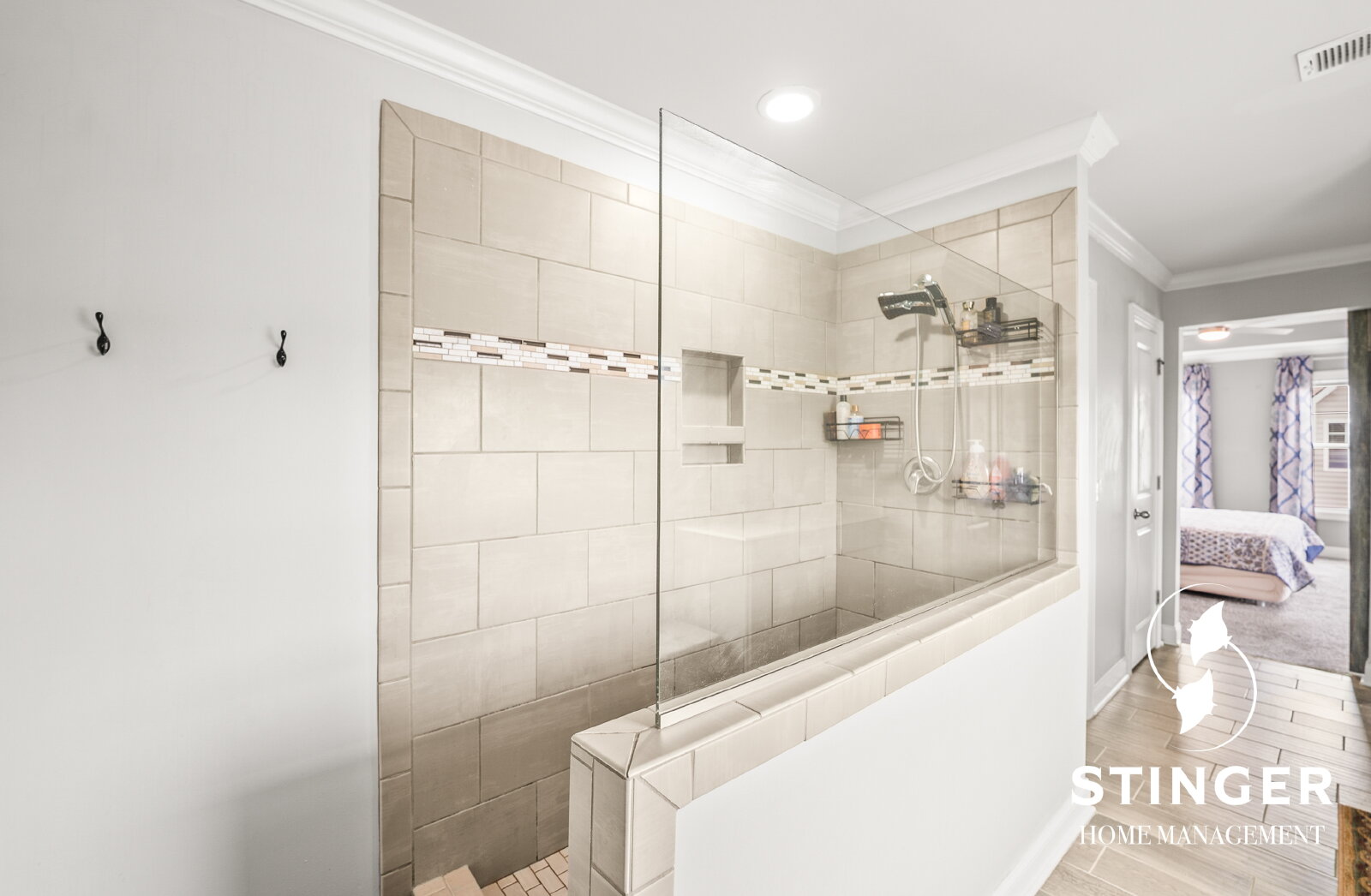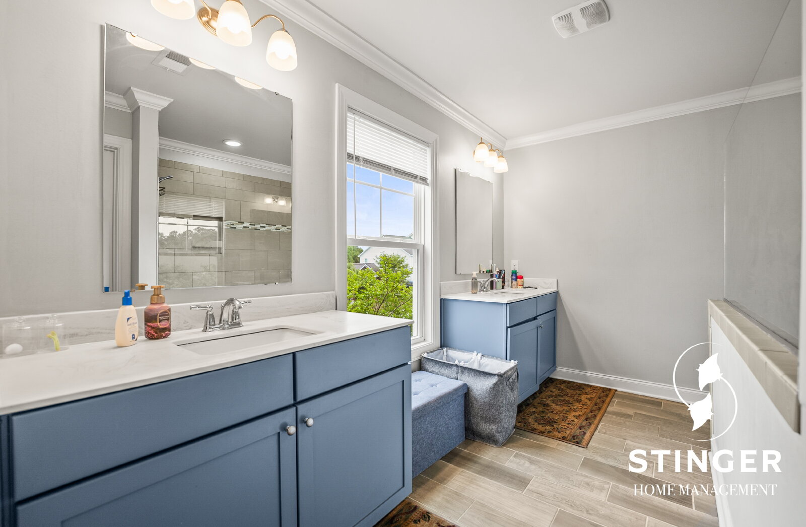 - Ensuite bathroom offers dual sinks and a large walk-in shower