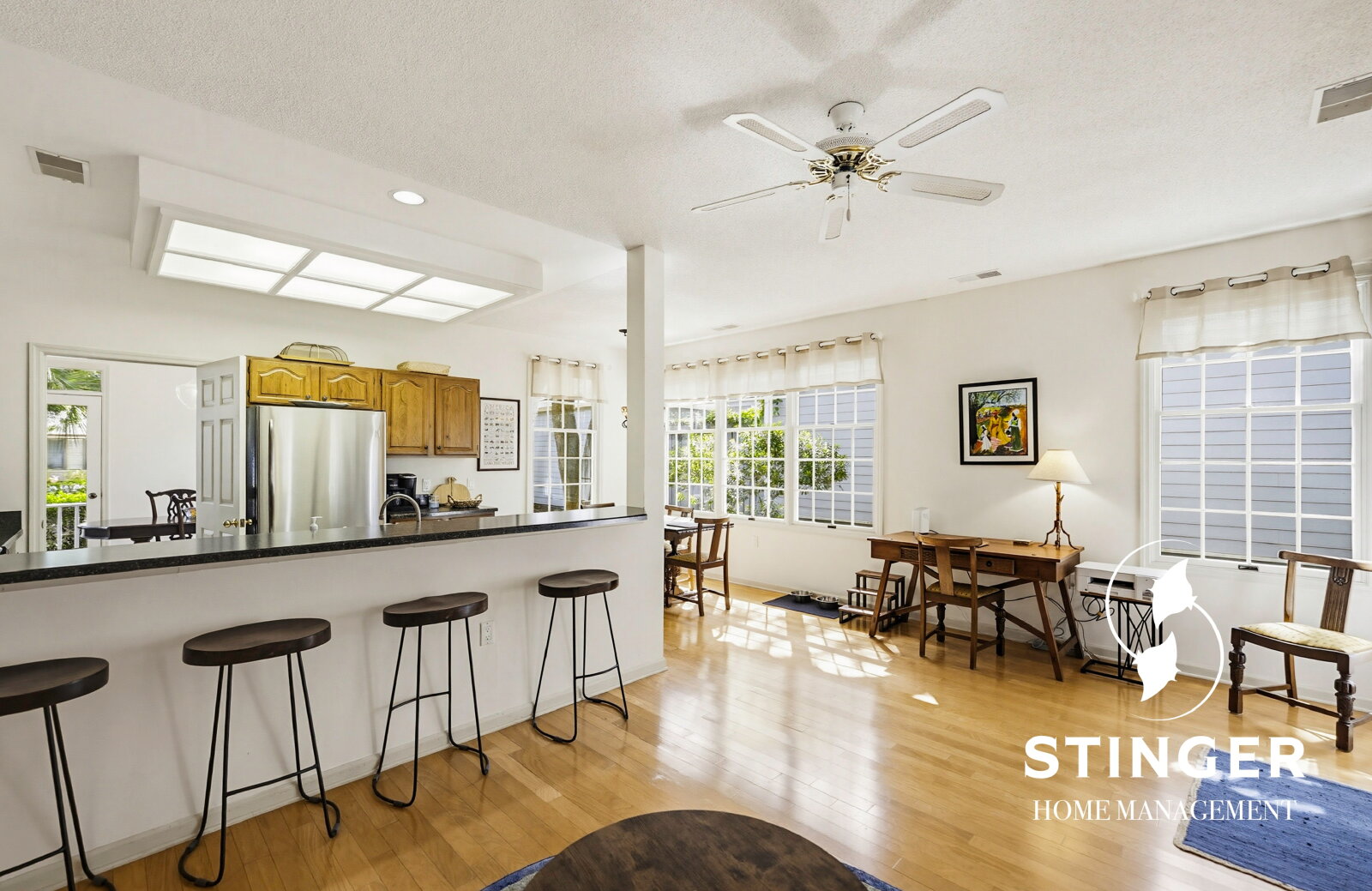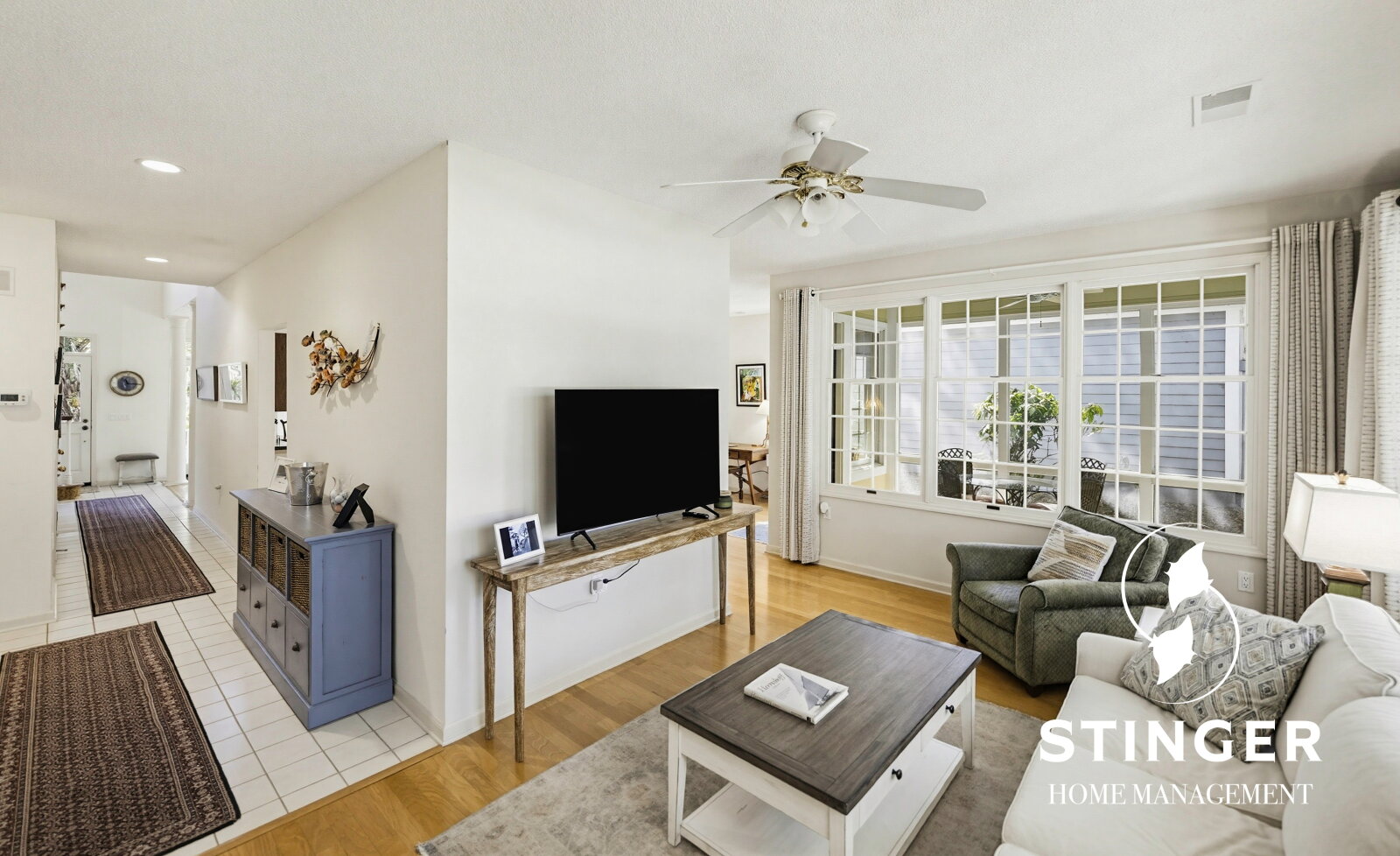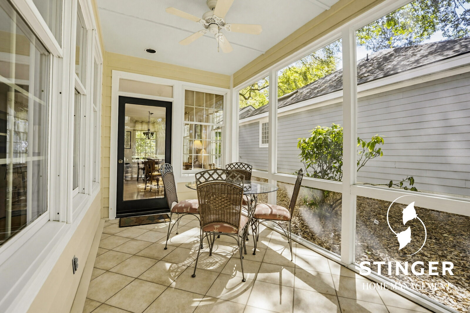 - Screened-in back porch to enjoy the coastal breeze year-round