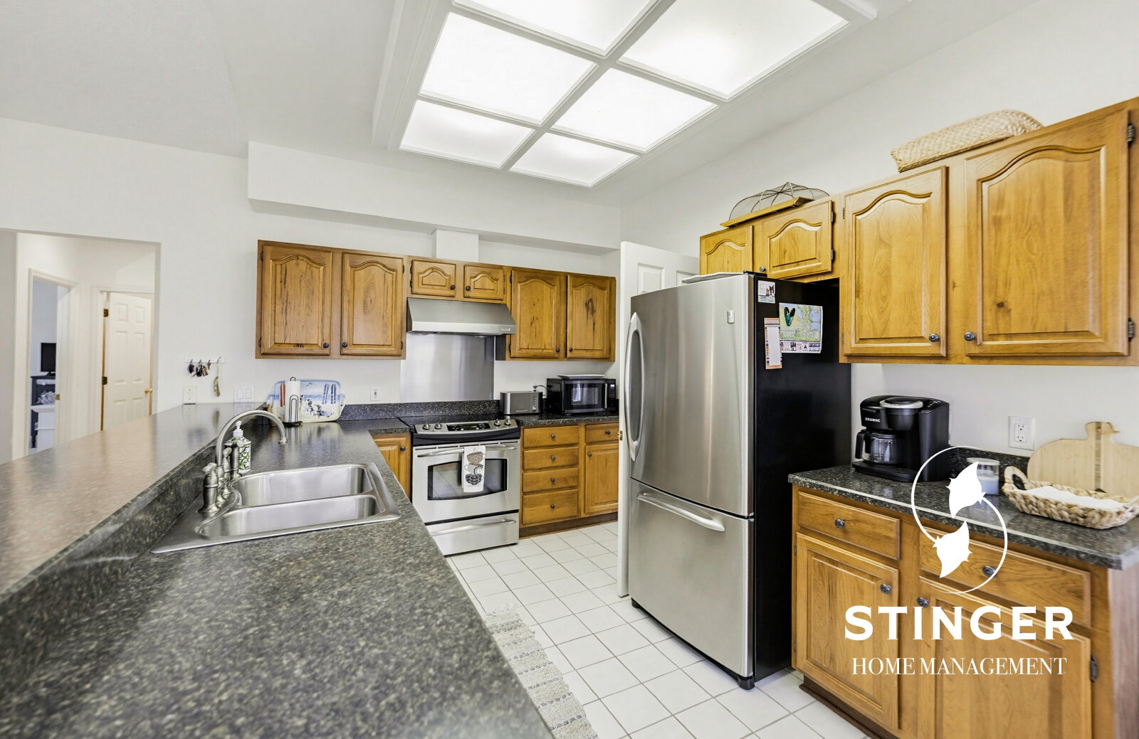 - Spacious kitchen with standard appliances, ample cabinet storage, and plenty of room to cook and entertain