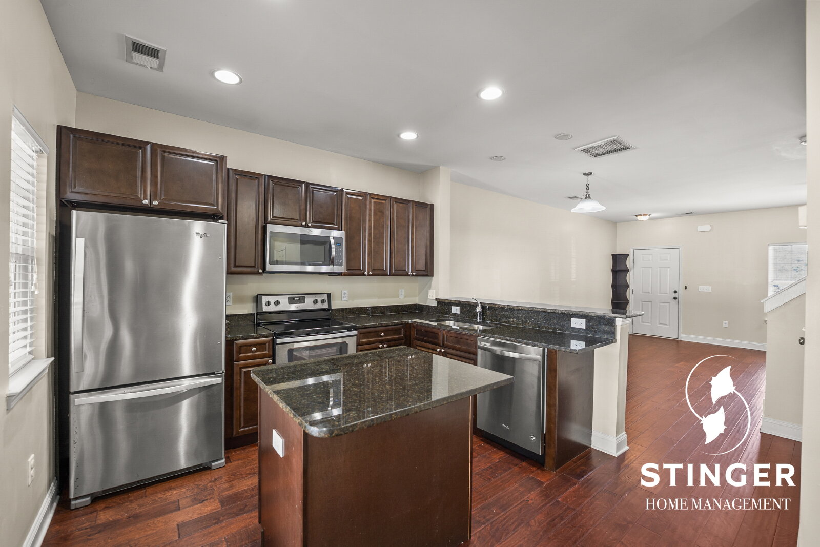 - Well-equipped kitchen featuring all standard appliances and a central island for extra prep space